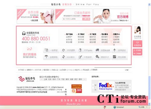 今天,鉆石小鳥在廣大用戶以及熱誠(chéng)網(wǎng)友的支持下不斷發(fā)展,已經(jīng)成為中國(guó)網(wǎng)絡(luò)鉆石銷售的代名詞。作為中國(guó)網(wǎng)絡(luò)鉆石行業(yè)“鼠標(biāo)+水泥”的開創(chuàng)者,鉆石小鳥不斷創(chuàng)新,不僅將各種最新技術(shù)手段與客戶體驗(yàn)?zāi)J綉?yīng)用于網(wǎng)站的開發(fā),不斷升級(jí)各地體驗(yàn)中心的軟硬件服務(wù),更加將鉆石體驗(yàn)文化拓展到電視媒體、銀行、展會(huì)、以及整個(gè)婚慶行業(yè)。目前鉆石小鳥已經(jīng)與中國(guó)銀行、交通銀行、工商銀行、建設(shè)銀行、招商銀行、光大銀行、民生銀行、上海銀行、東亞銀行建立了網(wǎng)上商場(chǎng)合作和會(huì)員積分兌換合作,是各大銀行的優(yōu)質(zhì)合作伙伴,并且連續(xù)兩年獲得工商銀行頒發(fā)的“年度最佳合作伙伴”獎(jiǎng)項(xiàng)。2008年,鉆石小鳥榮獲了中國(guó)CEO高峰論壇2008“十大最具成長(zhǎng)型企業(yè)”的殊榮,成為中國(guó)珠寶玉石首飾行業(yè)協(xié)會(huì)理事單位、上海黃金飾品行業(yè)協(xié)會(huì)理事單位、上海寶玉石行業(yè)協(xié)會(huì)理事單位、上海鉆石行業(yè)協(xié)會(huì)理事單位,為中國(guó)鉆石行業(yè)的繁榮發(fā)展不斷努力。