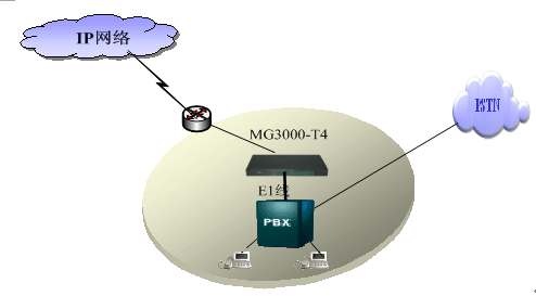 MG3000-T4提供1、2、4E1中繼,直接提供數(shù)字中繼口和PBX交換機對接,PBX交換機原有的撥號習慣和撥號方式不做改變,可以通過路由選擇的方式來走原來的PSTN網(wǎng)絡或者IP網(wǎng)絡,同時通過MG3000-T4來做電路交換和IP網(wǎng)的分組交換的轉(zhuǎn)換,實現(xiàn)該分支機構(gòu)和其他分支機構(gòu)的互連互通。