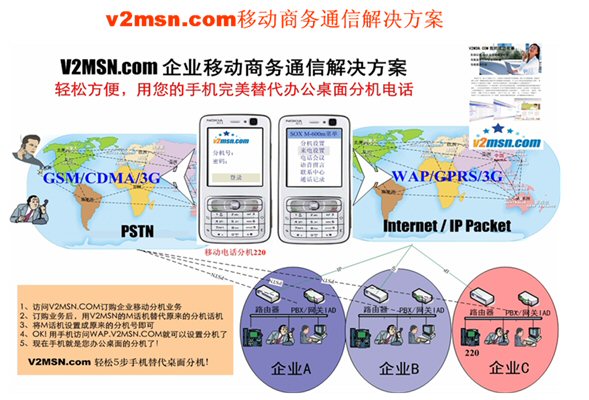 從美國人貝爾1876年發(fā)明電話一百多年來,當電話進入企業(yè)辦公后,企業(yè)利用電話通信技術為企業(yè)的經(jīng)營帶來了溝通協(xié)作的高效率,傳統(tǒng)PSTN電話網(wǎng)絡的時代企業(yè)都是自購和部署傳統(tǒng)的PBX(私有交換系統(tǒng)或集團電話系統(tǒng))或采用PSTN固網(wǎng)運營商提供的CENTREX(匯線通,集線通)來滿足企業(yè)對外的總機和內(nèi)部分機之間通信的需要、到了移動通信的時代,也就是前兩年移動運營商(中國移動、中國聯(lián)通)為了開發(fā)企業(yè)的通信市場推出了我們稱為“第一代的移動總機”或“商務總機”。而IP互聯(lián)網(wǎng)前幾年的迅速發(fā)展以及NGN下一代網(wǎng)絡發(fā)展逐漸成熟并開始進入商用,F(xiàn)MC(Fixed-mobile