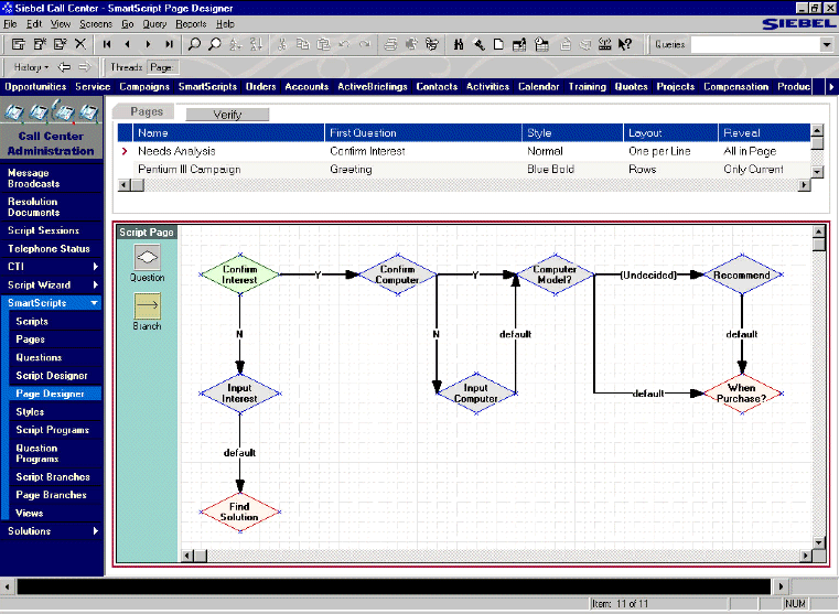 圖三. Siebel eMarketing綜合的客戶及市場分析 | 圖四. 使用Siebel eSmartScript工具設(shè)計(jì)市場營銷策略工作流程 |