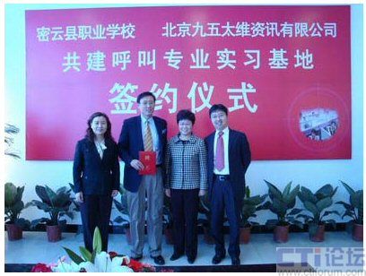 CTI論壇(ctiforum)04月30日消息: 近日,密云縣職業(yè)學(xué)校與北京九五太維資訊有限公司校企合作共建呼叫專業(yè)實習(xí)基地簽約儀式在密云縣職業(yè)學(xué)校隆重舉行,市教委職成處處長李敏,縣委常委副縣長王春林、副縣長錢福生、副縣長徐芳出席簽約儀式并發(fā)表了講話。密云縣教委主任李鐘勤,北京九五太維資訊有限公司董事長汪遠,首席執(zhí)行官李寶民及其培訓(xùn)師團隊,密云縣經(jīng)濟開發(fā)區(qū)總公司及部分入?yún)^(qū)呼叫企業(yè)出席了簽約儀式。在簽約儀式上,密云縣教委主任李鐘勤向九五太維公司首席執(zhí)行官李寶民博士頒發(fā)了聘書,聘請李寶民博士為密云縣職業(yè)學(xué)校名譽校長。
