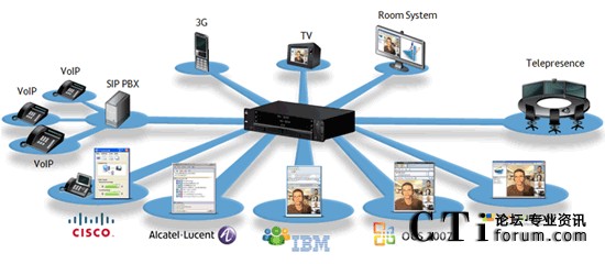 RADVISION的SCOPIA能夠將統(tǒng)一通信變成一個完整的會議解決方案,最大限度地利用統(tǒng)一通信實時協(xié)作投資。SCOPIA會議平臺允許用戶直接從業(yè)內領先的統(tǒng)一通信應用中創(chuàng)建和發(fā)起多方音頻和視頻會議,并將這些會議擴展到眾多設備,如基于標準的視頻會議系統(tǒng)、3G可視電話、甚至是目前市場上銷售的任何一部電話。