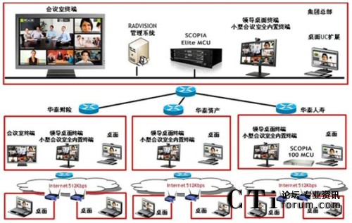 隨著業(yè)務(wù)的不斷擴(kuò)大,華泰保險經(jīng)紀(jì)有限公司需要不斷加快信息交流的速度,以確保信息交流的暢通。華泰保險經(jīng)紀(jì)有限公司希望能夠通過現(xiàn)有網(wǎng)絡(luò),利用先進(jìn)的通信傳輸技術(shù),組建整個集團(tuán)公司的視頻會議系統(tǒng),并能保證視頻會議系統(tǒng)的正常、穩(wěn)定運(yùn)行。同時,華泰保險的領(lǐng)導(dǎo)希望能夠充分利用已經(jīng)建成的公司網(wǎng)絡(luò)資源,將各地營業(yè)部連接在一起,用于召開不同規(guī)模、各種形式的行政會議和業(yè)務(wù)會議、業(yè)務(wù)培訓(xùn),以達(dá)到提高工作效率、節(jié)省差旅成本、加強(qiáng)總部對各個分支機(jī)構(gòu)管理的目的。從而真正增強(qiáng)企業(yè)的競爭力,推動企業(yè)信息化建設(shè)的發(fā)展。