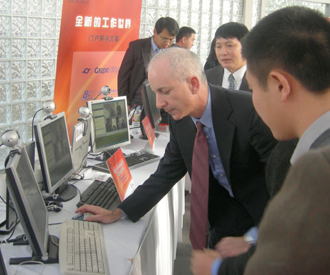 11月24日,微軟信息工作者解決方案媒體活動在北京隆重召開,微軟(中國)有限公司邀請其合作伙伴共同參與此項盛事,北京華緯訊公司作為受邀的九家核心合作伙伴之一,攜“快視通(Quick Video Communicator)”視頻會議系統(tǒng)與微軟共同展示了基于Office System的協(xié)同解決方案,致力于為商務(wù)人士打造完美的信息化協(xié)同辦公平臺,以實現(xiàn)個人、團(tuán)隊與公司協(xié)同辦公的無縫連接。