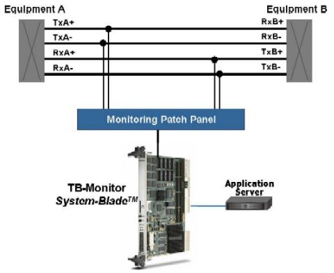 每個(gè)TB監(jiān)測系統(tǒng)刀片都配有64E1/T1的接收接口,可單向監(jiān)測多達(dá)64個(gè)E1/T1鏈路,或雙向監(jiān)測多達(dá)32個(gè)E1/T1鏈路。使用TelcoBridges的監(jiān)測接線面板,每條鏈路通過基于標(biāo)準(zhǔn)的高阻抗連接進(jìn)行探測,實(shí)現(xiàn)非插入式網(wǎng)絡(luò)監(jiān)測。