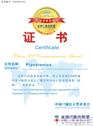 在近日結(jié)束的CIPCA2008年度中國IP通訊大獎評選中,繽特力(Plantronics) 榮獲“最佳呼叫中心外設(shè)提供商(國際類)”稱號。CTI論壇編輯