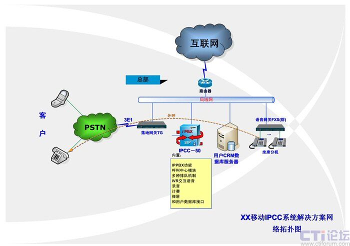 隨著社會的進步和發(fā)展,各企業(yè)和公司越來越重視將現(xiàn)代科技和營銷相結合,華東某省移動公司,為了快速高效地拓展自己的業(yè)務,決定借助網(wǎng)絡和通訊的發(fā)展建立新的營銷平臺,通過嚴格的考察和篩選,選擇攜手Polylink集團打造新型的IP呼叫中心平臺。 4.方案設計