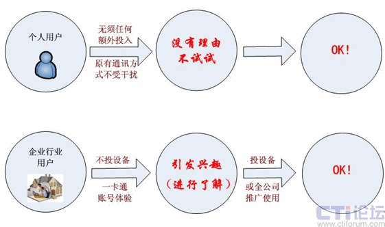 通過一卡通的方式,客戶可以利用原來的座機(jī)、小靈通、手機(jī),直接接入VOIP的通訊平臺,享受運營商、虛擬運營商提供的各種服務(wù)項目。由此,大大降低了客戶享受服務(wù)的門檻,極大地擴(kuò)展了潛在客戶群。