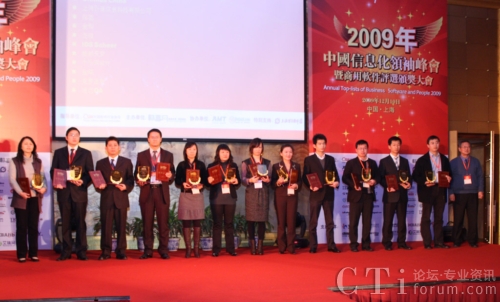 CTI論壇(ctiforum)12月15日消息(記者 張塵):12月10日,“2009中國信息化領(lǐng)袖峰會暨商用軟件評選頒獎大會”在上海東錦江索菲特大酒店隆重召開。此次會議以軟件行業(yè)協(xié)會為指導(dǎo)單位,由暢享網(wǎng)主辦,AMT集團(tuán)及德賽網(wǎng)協(xié)辦,并得到上海浦東軟件園的特別支持,通過歷時(shí)三個(gè)多月的調(diào)查研究和評選,結(jié)果于當(dāng)日揭曉。CTI論壇報(bào)道