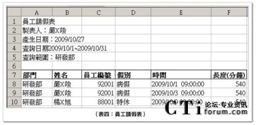 此表主要呈現(xiàn)員工請假明細(xì),用于現(xiàn)場管理時(shí),主管審核座席員臨時(shí)請假的核可依據(jù),以及結(jié)算考勤或是考核時(shí)的查核數(shù)據(jù)。