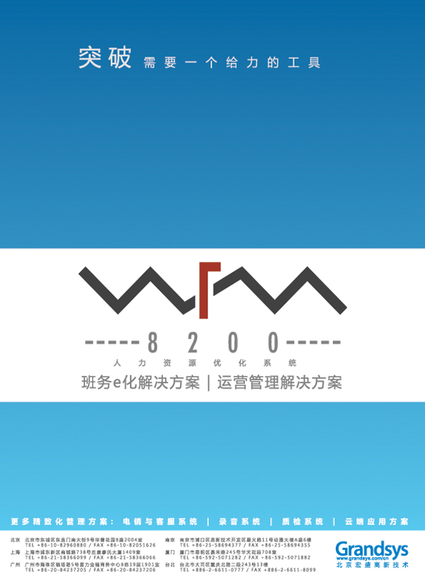 Grandsys 有最堅強(qiáng)的設(shè)計研發(fā)團(tuán)隊(duì),以16年豐富的行業(yè)知識為基礎(chǔ),發(fā)展自有品牌應(yīng)用軟件與專業(yè)服務(wù)事業(yè),盛大推出LOG8000KS錄音與關(guān)鍵詞辨識分析系統(tǒng)、QMS8100KS質(zhì)檢與關(guān)鍵詞辨識分析系統(tǒng)、WFM8200人力資源優(yōu)化管理系統(tǒng)、和eVoice8300電話營銷與客戶服務(wù)系統(tǒng),為企業(yè)打造完整的呼叫中心管理平臺。