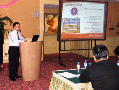 微軟公司負(fù)責(zé)天津地區(qū)的夏玉玲小姐在簡(jiǎn)短的開(kāi)幕式后首先發(fā)表演講,介紹了微軟為商業(yè)應(yīng)用開(kāi)發(fā)的各種商務(wù)解決方案(MBS)。其后通用咨詢(xún)公司總經(jīng)理鄭明先生上臺(tái)演說(shuō),其演講主題將營(yíng)銷(xiāo)管理理論體系與微軟CRM密切結(jié)合,博得了與會(huì)者贊同的掌聲。