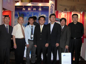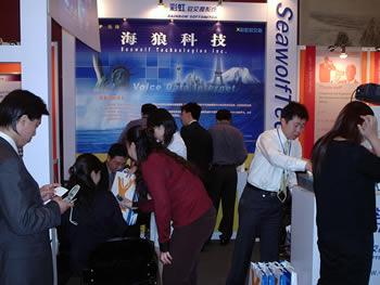 2005年5月18日在北京長城飯店召開的《2005中國IP語音網(wǎng)絡(luò)、軟交換及SIP研討會暨展覽會》上,海狼科技展臺前人頭攢動,很多商家對海浪科技技術(shù)和產(chǎn)品的表現(xiàn)感到相當滿意,并有新加坡、臺灣客戶現(xiàn)場購買產(chǎn)品。海狼科技展臺