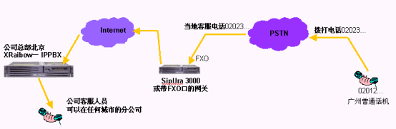 - 跨地域來(lái)電轉(zhuǎn)接,比如某個(gè)分支機(jī)構(gòu)的客戶撥叫該分支機(jī)構(gòu)電話,電話接起后,如果客戶需求沒有得到順利的答復(fù),在客戶電話保持的情況下,可以將電話轉(zhuǎn)接到在全國(guó)的任何一個(gè)IPPBX分機(jī)上。