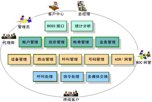 呼叫處理 | 設(shè)計原則: 處理接受終端用戶的呼叫請求。 代理向policy請求呼叫認證系統(tǒng) 中每一個呼叫,負責(zé)上報給policy,并接受policy的指示。 功能: 設(shè)備管理:包括:設(shè)備信息管理、設(shè)備號碼管理、用戶的路由策略決定,統(tǒng)計分析、綜合查詢等等。 路由管理:為管理者全方位地管理系統(tǒng)擁有的路由資源,并對這些資源進行開發(fā)提供決策支持。如為不同的客戶不同的要求,提供最適合的路由組合。 呼叫管理:監(jiān)控系統(tǒng)現(xiàn)在正在進行的通話,讓管理者實時了解系統(tǒng)當(dāng)前的業(yè)務(wù)狀況。 ASR統(tǒng)計:讓管理員實時了解系統(tǒng)的近一段時間的各類用戶,各路由的接通率,平均通話時長等。 網(wǎng)管:提供管理員管理每個設(shè)備的信息,并提供遠程登錄管理到Internet上任何注冊到系統(tǒng)上的設(shè)備。 帳戶管理:管理系統(tǒng)中的每一個帳戶,支持多級的帳戶管理。上一級可以依據(jù)權(quán)限對下一級進行管理。 批價管理:為各種帳戶提供與其相適應(yīng)的價格策略,以最低的成本最有效地激勵客戶。如定制打折,套餐等不同的定價策略. 帳單管理:為每個帳戶提供定時準(zhǔn)確帳單收據(jù)?缮 Word、Excel、txt 等不同格式的帳單明細報表和統(tǒng)計報表。 業(yè)務(wù)管理:為每個用戶提供各種不同用戶所需要的業(yè)務(wù),并能快速的提供新的業(yè)務(wù)。如呼叫轉(zhuǎn)移,呼叫等待等業(yè)務(wù)。 |