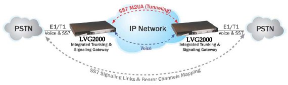 TDM隧道這一特性可以被使用去傳輸除7號信令連接之外的7號信令通道,使用LVG 2000支持的SIGTRAN和SS7互通(見圖3)