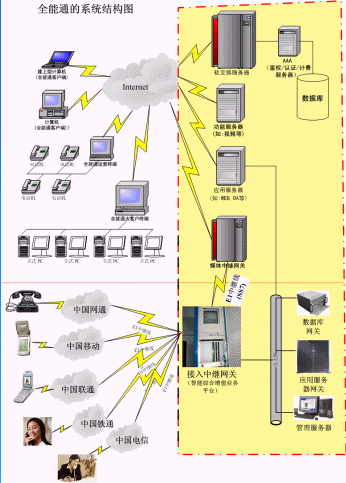 在和創(chuàng)世紀(jì)全能通的基礎(chǔ)下電信、網(wǎng)通、移動(dòng)、聯(lián)通、鐵通、衛(wèi)通等電信運(yùn)營商可用來做下一代網(wǎng)絡(luò)(NGN)業(yè)務(wù)及運(yùn)營,虛擬電信運(yùn)營商和增值業(yè)務(wù)服務(wù)商、新興電信運(yùn)營商開展各種電信運(yùn)營、增值業(yè)務(wù)和搶占語音市場的利器。(具體有關(guān)‘如何用全能通平臺切入語音市場’,請來來電咨詢)