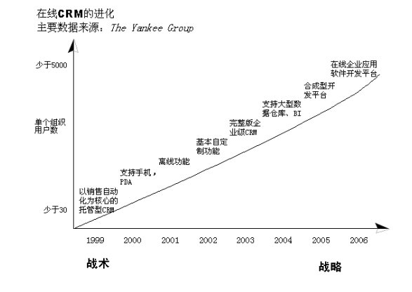 根據(jù)AMR的報(bào)道,2005年全球CRM(客戶關(guān)系管理系統(tǒng))軟件托管(Hosted)市場(chǎng)規(guī)模翻了一翻。國(guó)內(nèi)的CRM軟件托管市場(chǎng)也悄然興起。 2005年是全球CRM市場(chǎng)發(fā)生天翻地覆變化的一年,CRM市場(chǎng)已達(dá)到120億美元規(guī)模(根據(jù)AMR數(shù)據(jù))。傳統(tǒng)應(yīng)用軟件商們紛紛涉足應(yīng)用軟件托管,但三心二意。傳統(tǒng)應(yīng)用軟件巨頭Siebel,因客戶選擇其托管CRM而通常不會(huì)再買其高利潤(rùn)的傳統(tǒng)CRM產(chǎn)品,其在市場(chǎng)推廣力度和技術(shù)服務(wù)水平上遠(yuǎn)不如Salesforce,Siebel最后被Oracle收購(gòu)。在Peoplesoft