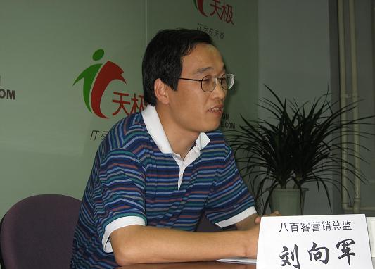 劉向軍:一個公司的名稱一定有它的含義。當(dāng)時創(chuàng)業(yè)的時候來講,這個名字意思很多。其中很重要的就是一個理念。當(dāng)時對未來市場的評估看不太清楚,但是對一個提供在線托管服務(wù)廠商,單位廠商認為至少要到八百個客戶。所以八百客具有八百個客戶的意思。當(dāng)然還有其他的意思。現(xiàn)在八百客經(jīng)過這么兩年的時間,無論從產(chǎn)品技術(shù),還是從客戶的現(xiàn)在擁有量,還是在市場影響層面,已經(jīng)站住腳跟。當(dāng)然一個行業(yè)的發(fā)展,這種趨勢越來越快。