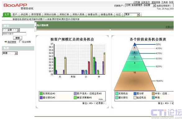1.800CRM是一個(gè)完成系統(tǒng)的銷售一體化方案:幫助企業(yè)控制用戶資源,強(qiáng)化銷售執(zhí)行,其隨需定制的客戶管理、多渠道客戶互動(dòng)、全面的銷售統(tǒng)計(jì),決策系統(tǒng)的完備都遠(yuǎn)優(yōu)于其他同類產(chǎn)品。800CRM保持800APP系列產(chǎn)品一貫的簡(jiǎn)單靈活、可個(gè)性化定制的頁(yè)面,設(shè)計(jì)流程清晰,在功能方面支持包括短信、傳真、郵件、即時(shí)通訊等多種與客戶溝通工具,國(guó)際化標(biāo)準(zhǔn)的客戶服務(wù)流程及工具,配有完整的自動(dòng)化統(tǒng)計(jì)分析功能,還有專業(yè)的項(xiàng)目管理及解決方案,支持超過十層以上的權(quán)限設(shè)計(jì),還可隨意定制復(fù)雜的審批流程。