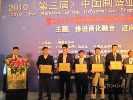 CTI論壇(ctiforum)12月27日消息(記者 潘婷婷):12月16日,由中國(guó)信息協(xié)會(huì)聯(lián)合我國(guó)十幾家制造業(yè)行業(yè)協(xié)會(huì)共同舉辦的“2010(第三屆)中國(guó)制造業(yè)信息化推進(jìn)大會(huì)暨中國(guó)制造業(yè)信息化年度頒獎(jiǎng)盛典”在北京成功舉行。中國(guó)信息協(xié)會(huì)會(huì)長(zhǎng)盧時(shí)徹、中國(guó)機(jī)械工業(yè)聯(lián)合會(huì)特別顧問、國(guó)家信息化專家咨詢委員會(huì)委員朱森第、工業(yè)和信息化部信息化推進(jìn)司安筱鵬等領(lǐng)導(dǎo)出席此次活動(dòng)并發(fā)表演講。會(huì)上,八百客獲得“2010年度CRM領(lǐng)軍企業(yè)”大獎(jiǎng),至此,八百客已經(jīng)斬獲“中國(guó)云計(jì)算領(lǐng)軍企業(yè)”和“CRM領(lǐng)軍企業(yè)”雙料大獎(jiǎng),為2010年畫上了圓滿的句號(hào)。