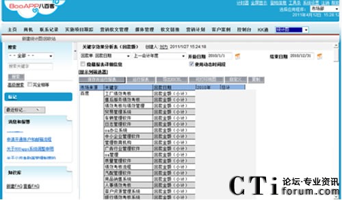 “廣撒網(wǎng)式的企業(yè)營(yíng)銷方式很難找到真正的目標(biāo)客戶,而利用搜索引擎則更貼近客戶的主觀需求,通過投放關(guān)鍵詞,讓目標(biāo)客戶主動(dòng)出現(xiàn)!崩铐翟谘葜v中指出,“企業(yè)通過百度后臺(tái)可以看到每個(gè)關(guān)鍵字花了多少錢,被點(diǎn)擊了多少次,但卻無(wú)法統(tǒng)計(jì)關(guān)鍵字所帶來(lái)的收入。為了更好的達(dá)到關(guān)鍵詞廣告投入效果,八百客800APP—CRM系統(tǒng)與百度API接口對(duì)接,實(shí)現(xiàn)集成,這樣便可以輕松獲知客戶的關(guān)鍵字來(lái)源。通過800APP后臺(tái)系統(tǒng)所做的統(tǒng)計(jì)報(bào)表,可以清晰的看到通過哪個(gè)關(guān)鍵字獲得多少注冊(cè)客戶、多少成交客戶、多少匯款額,然后綜合對(duì)比每個(gè)關(guān)鍵詞的性價(jià)比,關(guān)掉不賺錢的關(guān)鍵字,將錢花在賺錢的關(guān)鍵字上。而且根據(jù)800APP系統(tǒng)所做的統(tǒng)計(jì)數(shù)據(jù),可以做出市場(chǎng)投入與產(chǎn)出的預(yù)期增長(zhǎng)曲線。通過800APP系統(tǒng)與百度集成,可以輕松達(dá)到市場(chǎng)投入不變,效果成倍增長(zhǎng)的目的!