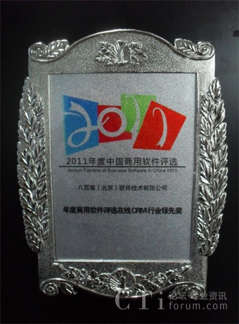 CTI論壇(ctiforum)12月20日消息(記者 張潔): 12月9日,以“模式創(chuàng)新帶動(dòng)產(chǎn)業(yè)及應(yīng)用轉(zhuǎn)型”為主題的“信息化領(lǐng)袖峰會(huì)暨商用軟件評(píng)選頒獎(jiǎng)大會(huì)”在上海隆重舉行。本次大會(huì)分四個(gè)環(huán)節(jié)進(jìn)行,其中最重要的環(huán)節(jié)莫過于揭曉“2011年度中國商用軟件評(píng)選”結(jié)果,作為全球領(lǐng)先的企業(yè)管理軟件供應(yīng)商八百客(www.800app.com)成功斬獲2011年度中國商用軟件評(píng)選“在線CRM行業(yè)領(lǐng)先獎(jiǎng)”。同時(shí),八百客的三位企業(yè)用戶美國宣偉涂料公司的潘總、上海企盈投資管理有限公司的何總、華圖教育的王總分別獲得 “2011年度信息化貢獻(xiàn)人物獎(jiǎng)”大獎(jiǎng)。