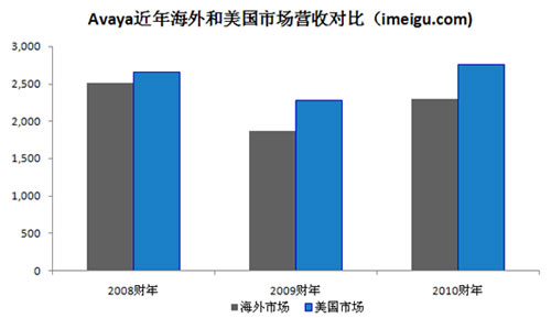 2008、2009、2010財(cái)年Avaya總營(yíng)收分別為49.23億美元、41.50億美元、50.60億美元,2009財(cái)年?duì)I收受宏觀經(jīng)濟(jì)(金融海嘯)因素影像而出現(xiàn)15.7%的下降,2010財(cái)年Avaya公司收購(gòu)原北電的企業(yè)通信部門(NES),受此合并報(bào)表影響和經(jīng)濟(jì)復(fù)蘇因素,2010財(cái)年?duì)I收相比2009財(cái)年增長(zhǎng)21.9%。