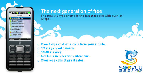 英國(guó)和黃3取消限制 買(mǎi)SIM卡即可任意撥打Skype 2009-04-27 |