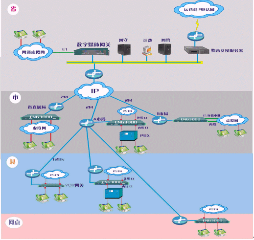 政府、行業(yè)VOIP系統(tǒng)結(jié)構(gòu)圖:
