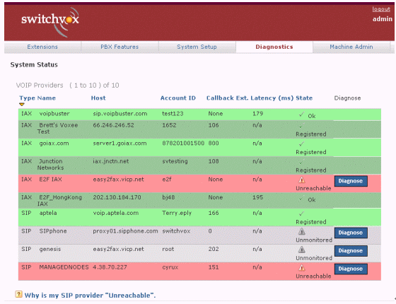 圖2中綠色表示正常,紅色表示出現(xiàn)問題,白色表示從沒有接通過。如果你按診斷(Diagnose),系統(tǒng)便會通過自動測試,告訴你問題出自那一段落。如果需要對每一個(gè)的詳細(xì)解析,可以按底部Why這個(gè)標(biāo)題,找尋答案。類似的終端、話機(jī)等配置、硬件診斷等,也有非常明撩的界面與解決問題的辦法。