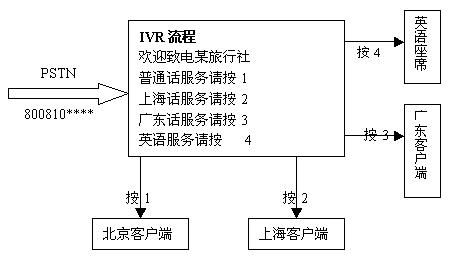 通訊平臺(tái)中設(shè)置語音菜單選項(xiàng),為呼入系統(tǒng)的客戶提供操作引導(dǎo)和自動(dòng)語音咨詢服務(wù)?蛻粲秒娫挀苋胫行暮,通過不斷地在話機(jī)上按鍵與計(jì)算機(jī)進(jìn)行交互應(yīng)答,計(jì)算機(jī)收到按鍵便播放相關(guān)語音。用此技術(shù)可為客戶提供7×24小時(shí)不間斷的多功能自動(dòng)語音服務(wù)。