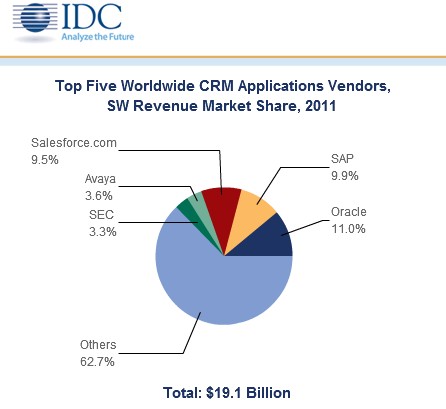 根據(jù)IDC的調(diào)查數(shù)據(jù)顯示,目前就CRM市場(chǎng)來(lái)說(shuō),Salesforce和SAP正呈現(xiàn)出一種超越甲骨文,奪取領(lǐng)頭羊?qū)氉内厔?shì)。云計(jì)算第一門(mén)戶(hù)