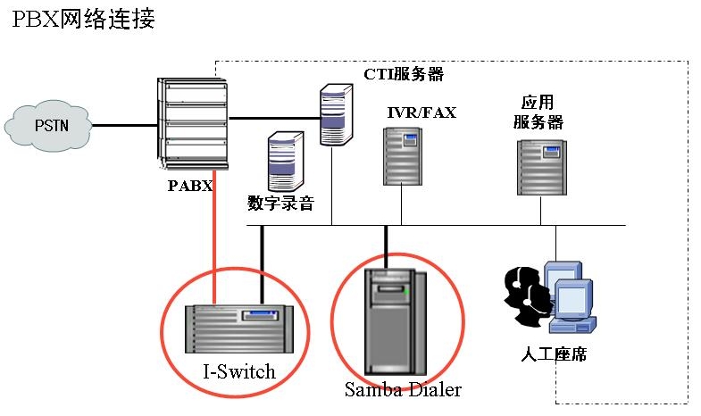 Samba Dialer和潤迅通信哈里斯數(shù)字程控交換機利用ISDN PRI進行匯接,共享現(xiàn)有話機,大大保護了投資。Samba Dialer直接通過PRI進行信令檢測,不依賴程控交換機的CTI功能,這樣可以避免大量外撥電話對CTI資源的占用而影響呼入業(yè)務(wù)的運作。另外,交換機的CTI接口一般不具備很高的穩(wěn)定性,Samba