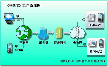 具體來講就是在手機(jī)里安裝“暢話寶”應(yīng)用軟件(在計(jì)算機(jī)桌面提供web客戶端),該軟件帶有通信錄和觸發(fā)GPRS的功能,可以通過無線互聯(lián)網(wǎng)將電話號(hào)碼發(fā)送到平臺(tái),通過PSTN發(fā)起通話(2方或多方)。這個(gè)手機(jī)客戶端軟件,可無縫對(duì)接到固網(wǎng)增值業(yè)務(wù)平臺(tái)上(多方通信平臺(tái))?蛻舳塑浖陨頂y帶有通信錄功能,調(diào)用方便。部分機(jī)型可調(diào)用手機(jī)本身的通信錄。