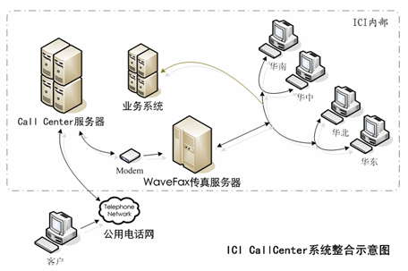 這些工作用傳統(tǒng)傳真機(jī)處理時,存在問題是:效率低,難管理,成本高,難以監(jiān)控進(jìn)度。其解決方案便是借助Call Center和專業(yè)傳真服務(wù)器的整合。
