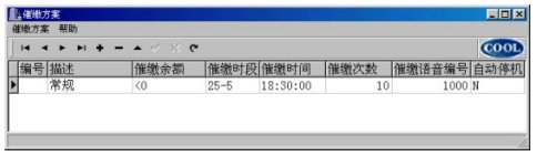 催繳時(shí)間:開始啟動(dòng)催繳的時(shí)間,該時(shí)間只是要求啟動(dòng)的時(shí)間,如果此時(shí)沒有空閑語音線路,則會(huì)等待空閑后才真正開始。