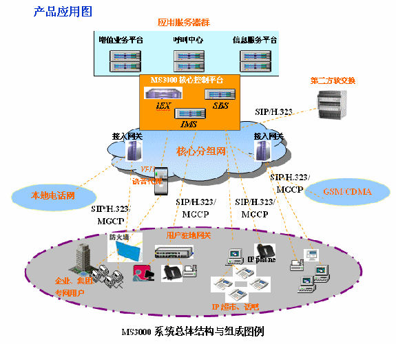 MS3000 IP多業(yè)務(wù)通信系統(tǒng)是上海思巴得信息科技有限公司精心打造的面向下一代通信網(wǎng)絡(luò)(NGN)的電信級(jí)通信系統(tǒng),主要為專(zhuān)網(wǎng)用戶(hù)和運(yùn)營(yíng)商(虛擬)提供基于IP網(wǎng)的多媒體通信業(yè)務(wù)。MS3000將PSTN的可靠性和IP網(wǎng)的靈活性很好的結(jié)合起來(lái),結(jié)合用戶(hù)的行業(yè)特點(diǎn)及需求,為用戶(hù)量身制定了實(shí)現(xiàn)簡(jiǎn)單、技術(shù)先進(jìn)、業(yè)務(wù)強(qiáng)大、收效顯著及強(qiáng)大可擴(kuò)展的解決方案,大大提升了業(yè)務(wù)提供商的核心競(jìng)爭(zhēng)力。MS3000核心平臺(tái)組成 iEX--IP電話交換機(jī) IMS--綜合管理系統(tǒng) SBS--綜合計(jì)費(fèi)系統(tǒng) VPU--語(yǔ)音代理單元 iTalk--軟電話終端 |
