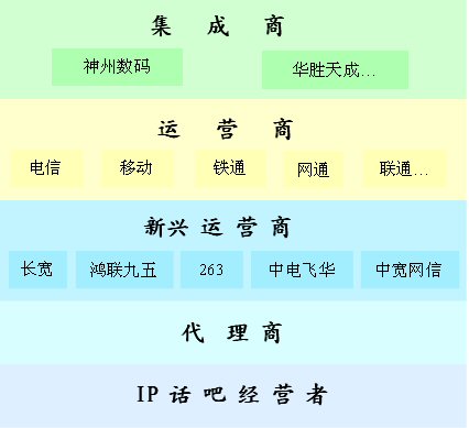隨著電信產(chǎn)業(yè)的進一步發(fā)展,NGN等新技術(shù)的出現(xiàn),國外市場的逐步滲透,傳統(tǒng)的單一語音業(yè)務已遠遠不能滿足用戶的多元化需求,窄帶向?qū)拵、單一語音向數(shù)據(jù)、語音、視頻等多媒體業(yè)務發(fā)展已是大勢所趨。由于NGN體系架構(gòu)的開放性,業(yè)務的多元化,設(shè)備制造商—電信運營商—虛擬運營商(代理商)—最終用戶的產(chǎn)業(yè)鏈也無法適應如今NGN的發(fā)展,必將出現(xiàn)一條更長、環(huán)節(jié)更多的NGN產(chǎn)業(yè)鏈。