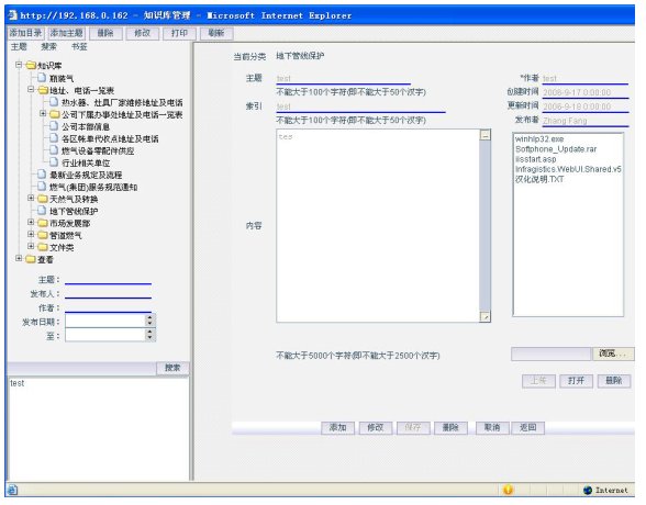 8)知識庫:業(yè)務(wù)信息和業(yè)務(wù)知識以知識庫的方式進行管理和查詢,為坐席和知識庫管理人員提供樹狀分支并支持模糊查詢的知識庫,通過它可以迅速查找出相應(yīng)的知識點,可以對知識條目進行收藏和查詢排名。