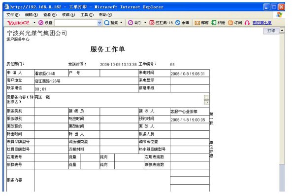 2)業(yè)務(wù)查詢:用戶可通過受理人員或自動語音應(yīng)答系統(tǒng)根據(jù)用戶要求從數(shù)據(jù)庫查詢資料,然后通過語音方式播報或送到用戶指定傳真機或其他終端設(shè)備上。應(yīng)考慮以后用web方式查詢氣費等數(shù)據(jù),以不動及主體設(shè)備方式平滑升級。