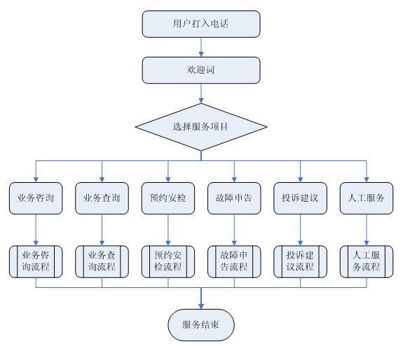 系統(tǒng)應(yīng)該提供開放的接口,以實(shí)現(xiàn)與各種應(yīng)用系統(tǒng)的無縫集成。以下為呼叫中心基本業(yè)務(wù)需求,其中短消息、Email、web方式為選配,呼叫中心系統(tǒng)應(yīng)支持上述方式,方便以后平滑升級(jí)。