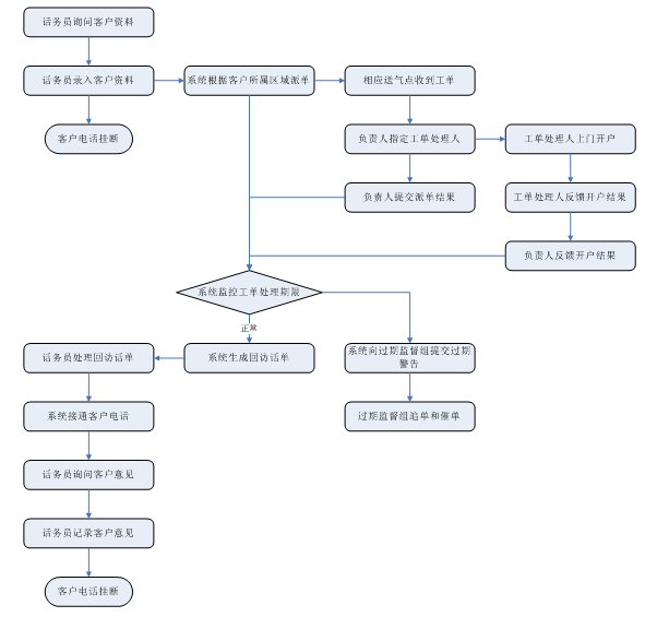 投訴受理:通過人工、自動(dòng)語音、短信、傳真、Email、web等方式受理各種用戶投訴,并可以工單的方式流轉(zhuǎn)到相關(guān)的部門進(jìn)行處理,并記錄處理過程和跟蹤處理結(jié)果。能夠處理從上級(jí)部門、消協(xié)等方面轉(zhuǎn)過來的用戶投訴。
