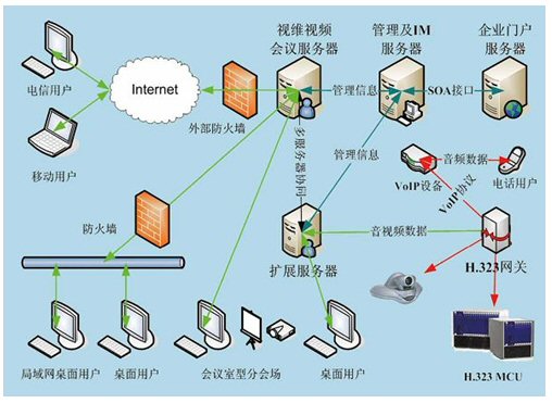 視維系統(tǒng)是一個基于IP網(wǎng)絡(luò)的綜合業(yè)務(wù)通訊平臺,通過多網(wǎng)絡(luò)接入方式實(shí)現(xiàn)網(wǎng)通、電信、聯(lián)通等用戶間高速互通;通過H.323模塊將企業(yè)內(nèi)部原有的硬件設(shè)備與視維系統(tǒng)鏈接起來,有效的節(jié)約了投資;其他如SIP模塊,短信模塊,固網(wǎng)電話接入等都可以根據(jù)用戶需要進(jìn)行擴(kuò)展。視維系統(tǒng)可以支持分布式視頻服務(wù)器集群,可利用企業(yè)內(nèi)部網(wǎng)絡(luò)或者互聯(lián)網(wǎng)構(gòu)建超大規(guī)模企業(yè)綜合通訊平臺;凇懊嫦蚍⻊(wù)體系架構(gòu)(SOA)”設(shè)計(jì)架構(gòu),實(shí)現(xiàn)很靈活地方便地與其業(yè)務(wù)系統(tǒng)如OA,HR,CRM,