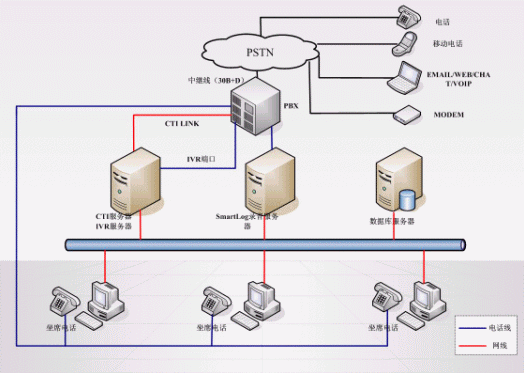 提供CTI接口實(shí)現(xiàn)與資源節(jié)點(diǎn)、話務(wù)員座席等的連接;