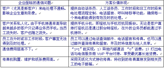 - 企業(yè)電話、電子郵件、語音留言、傳真等企業(yè)常用通信手段的整合;
