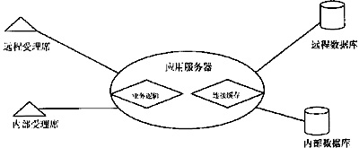 可以看出:我們把數(shù)據(jù)庫建在省受理中心(內部數(shù)據(jù)庫)或其他業(yè)務部門(外部數(shù)據(jù)庫),根據(jù)各地的需求,一個應用服務器可對應一個或多個數(shù)據(jù)庫服務器。應用服務器細分為業(yè)務邏輯和數(shù)據(jù)邏輯,業(yè)務邏輯響應客戶端的請求,從客戶端獲得參數(shù),返回結果,業(yè)務邏輯的組件將整個業(yè)務封裝,業(yè)務邏輯調用數(shù)據(jù)邏輯,實現(xiàn)對不同地點異構數(shù)據(jù)庫的訪問。