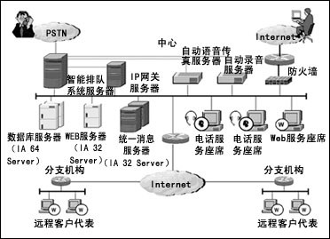 消息處理中心服務(wù)器協(xié)調(diào)客戶服務(wù)中心內(nèi)部各種服務(wù)資源的工作,使客戶來(lái)自電話網(wǎng)的訪問和來(lái)自互聯(lián)網(wǎng)的訪問能夠按照優(yōu)先級(jí)次序處理;