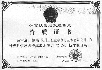 三匯公司獲得計(jì)算機(jī)信息系統(tǒng)集成資質(zhì)證書!