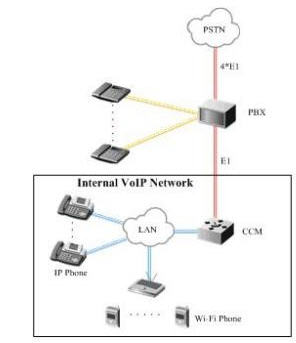 iBG3026,最后在PBX和Ubigate iBG3026之間再開通4條E1中繼,同時(shí),Ubigate iBG3026通過自帶的GE接口接入酒店的辦公局域網(wǎng),這樣即使出現(xiàn)客房人員使用網(wǎng)絡(luò)不規(guī)范的情況發(fā)生,也不會(huì)影響語音服務(wù)的質(zhì)量。